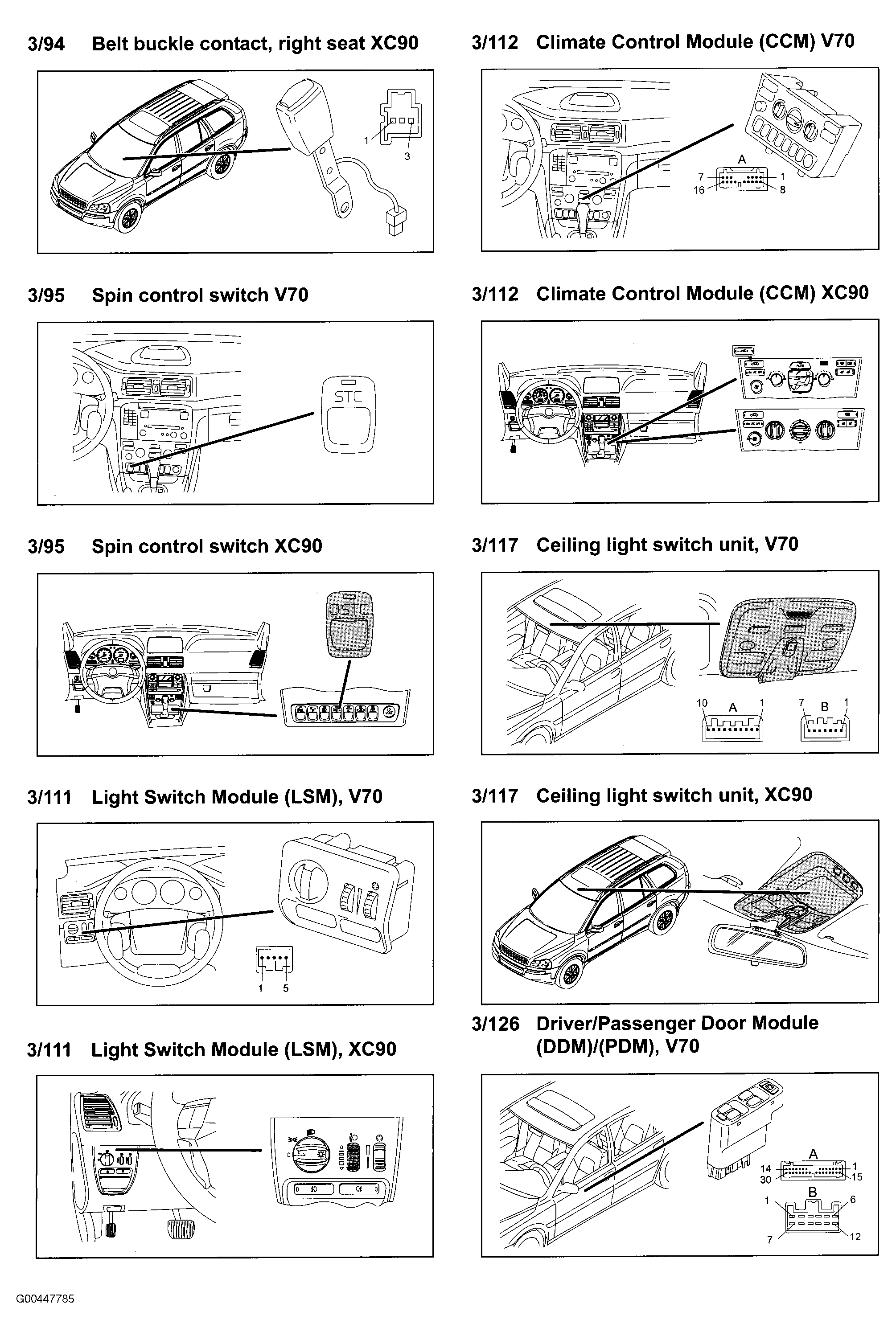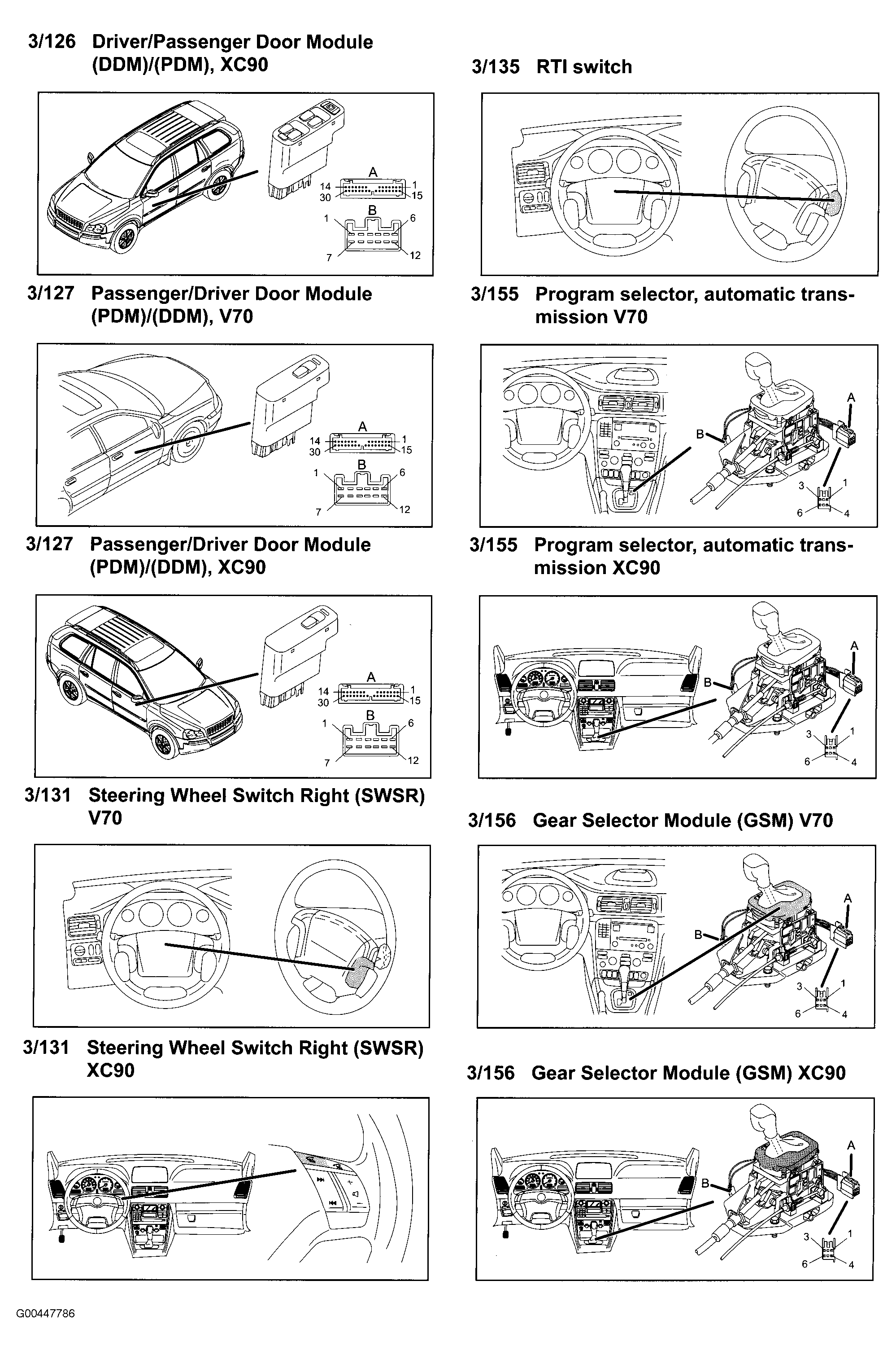 | Driver/Passenger Door Module (DDM)/(PDM) (V70) (3/126) | In driver's door. See Figure. |