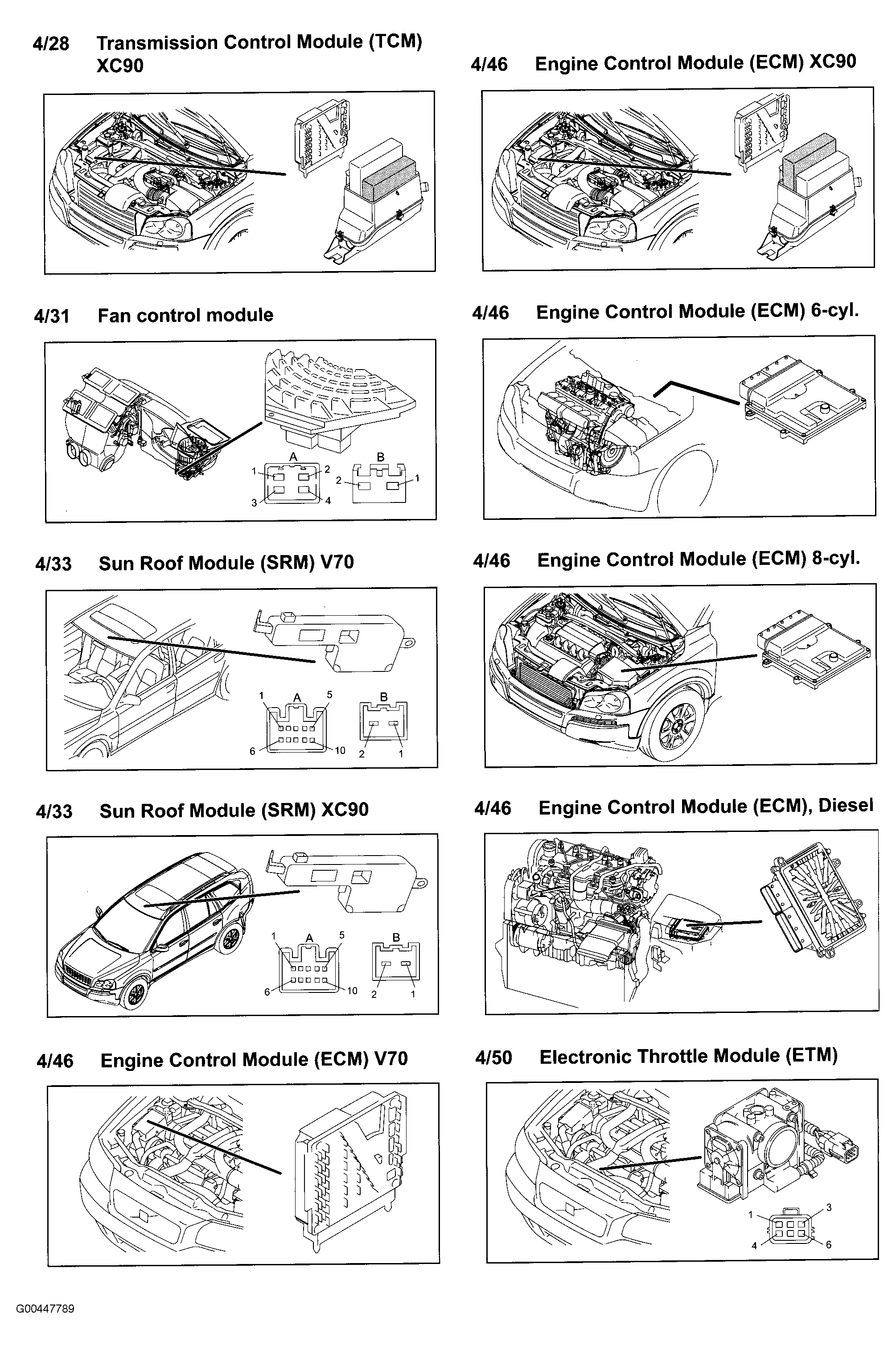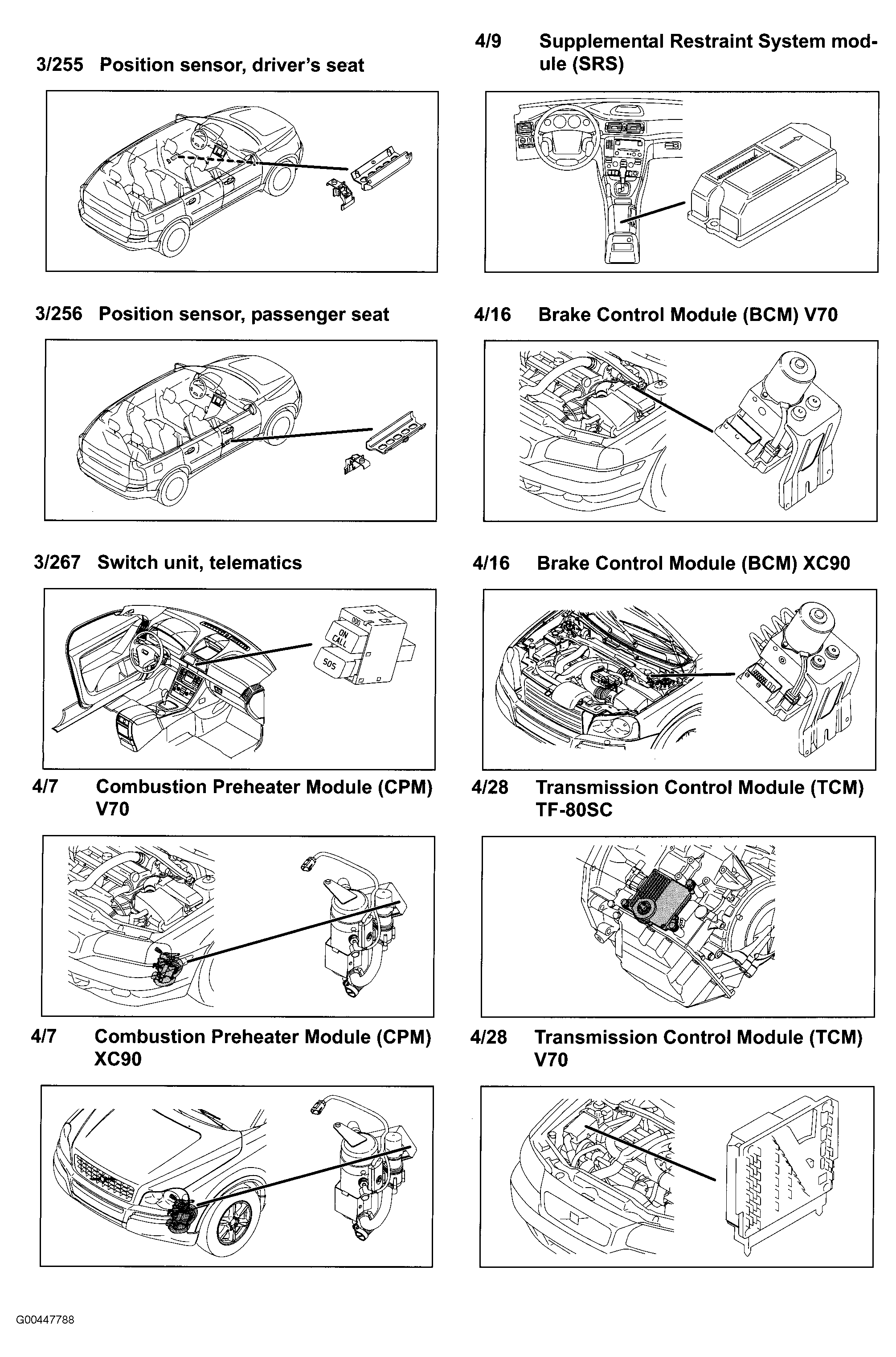 | Transmission Control Module (TCM) (XC90) (4/28) | Right front of engine compartment. See Figure. |