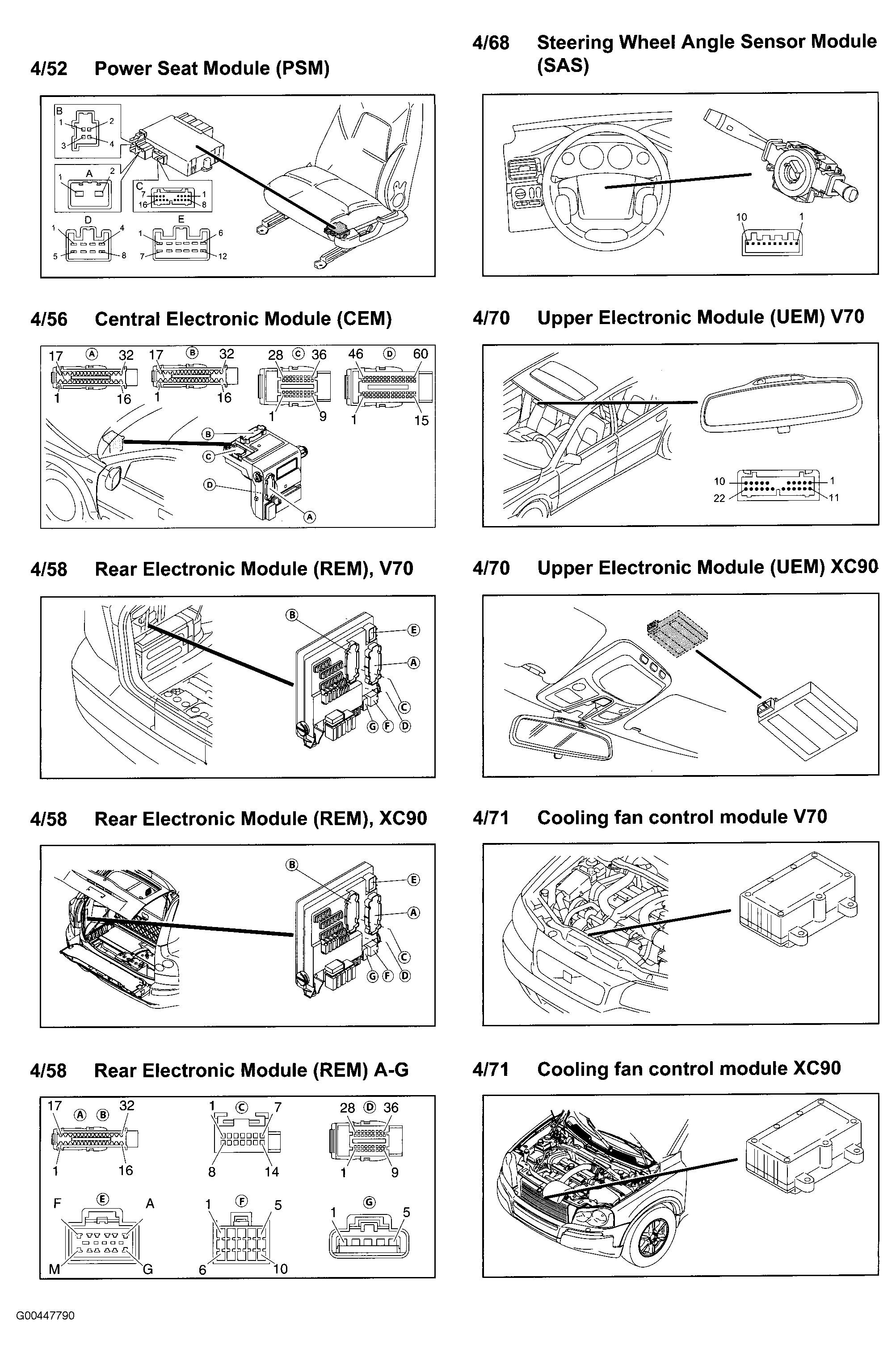 | Upper Electronic Module (UEM) (V70) (4/70) | Integral to rearview mirror. See Figure. |