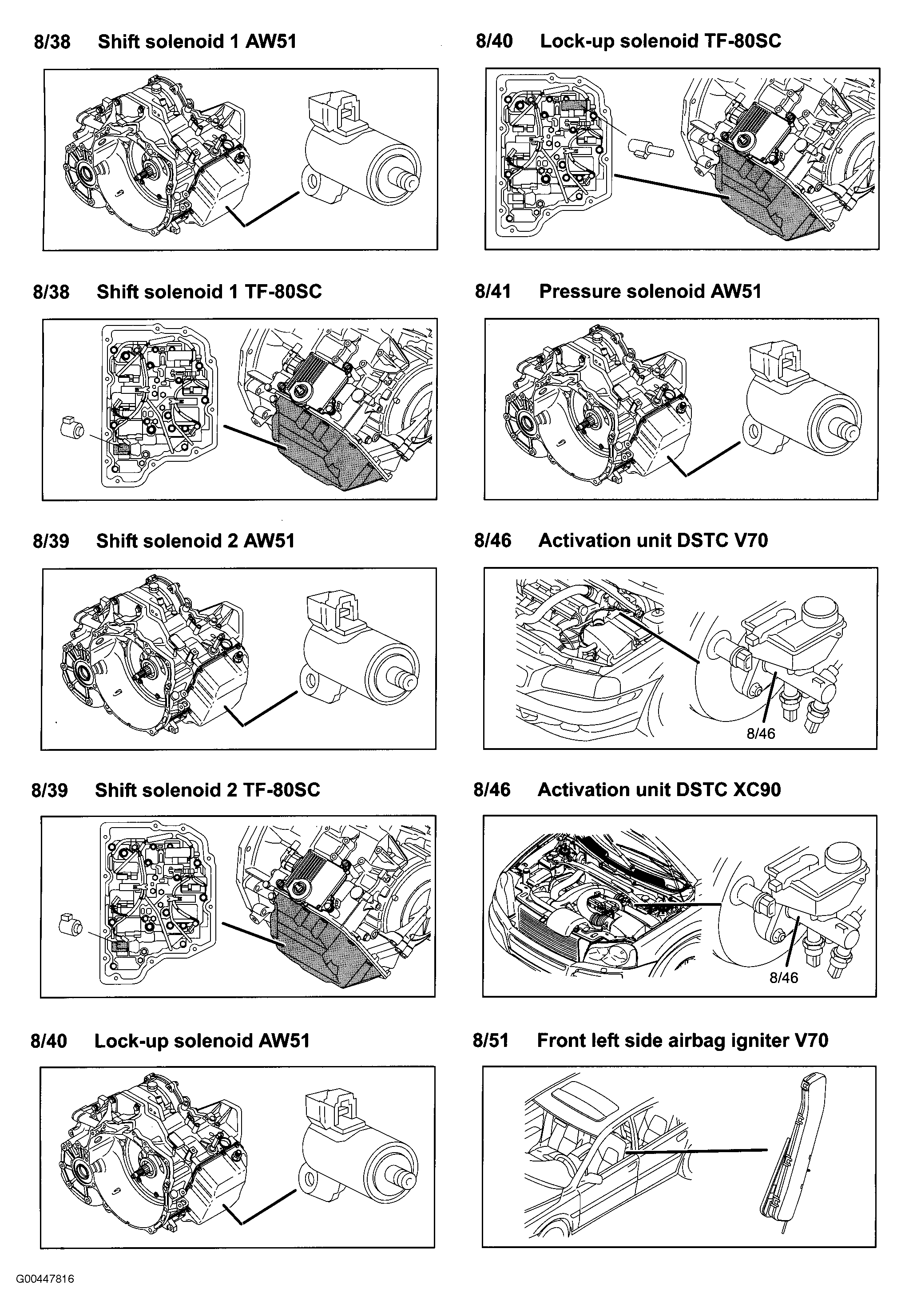 | Transmission Control Module (TCM) (V70) (4/28) | Right front of engine compartment. See Figure. |