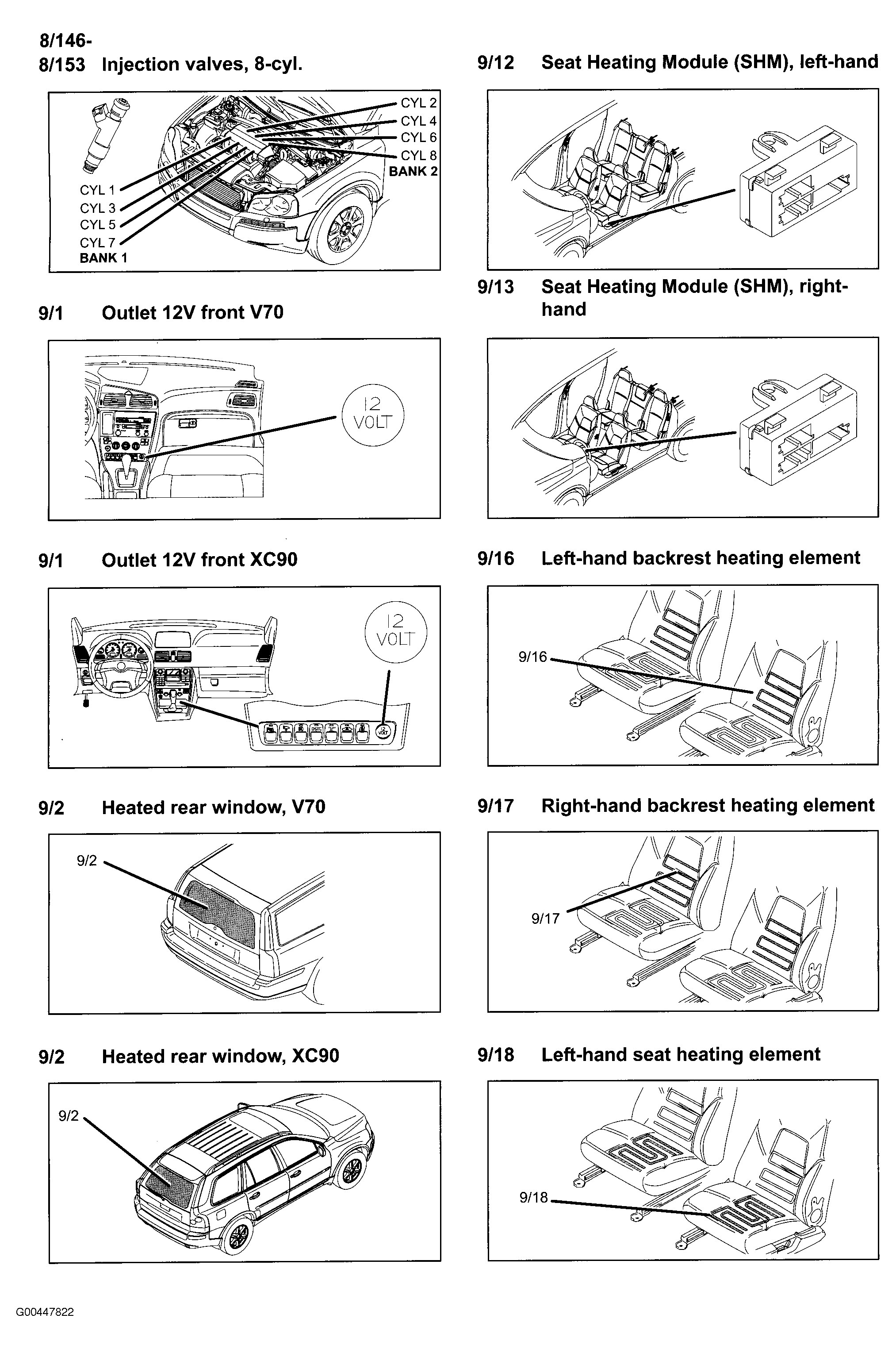 | Seat Heating Module (SHM) (Left/Right) (9/12, 9/13) | Under respective front seats. See Figure. |