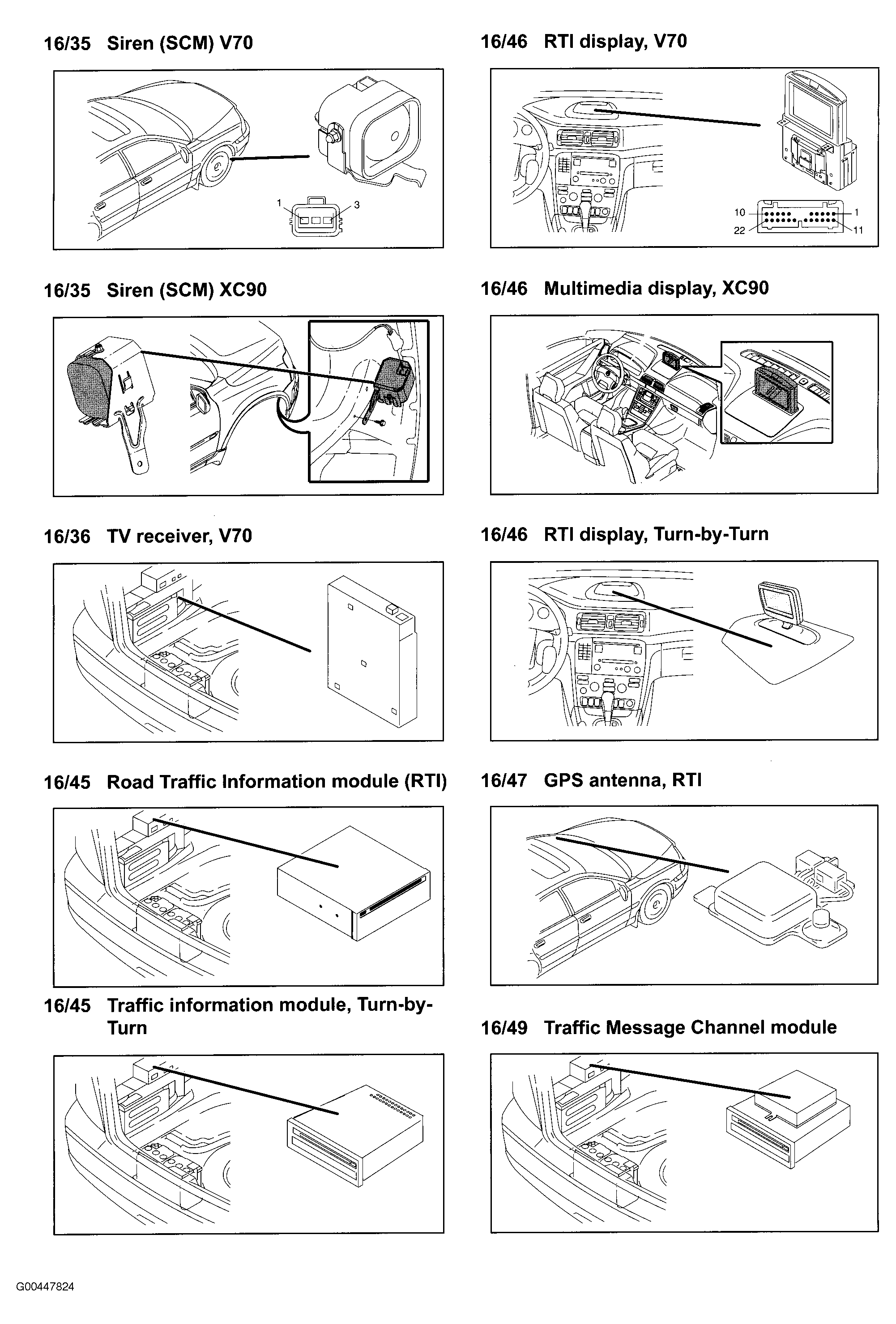| Traffic Information Module (Turn By Turn) (16/45) | Left rear of luggage compartment. See Figure. |