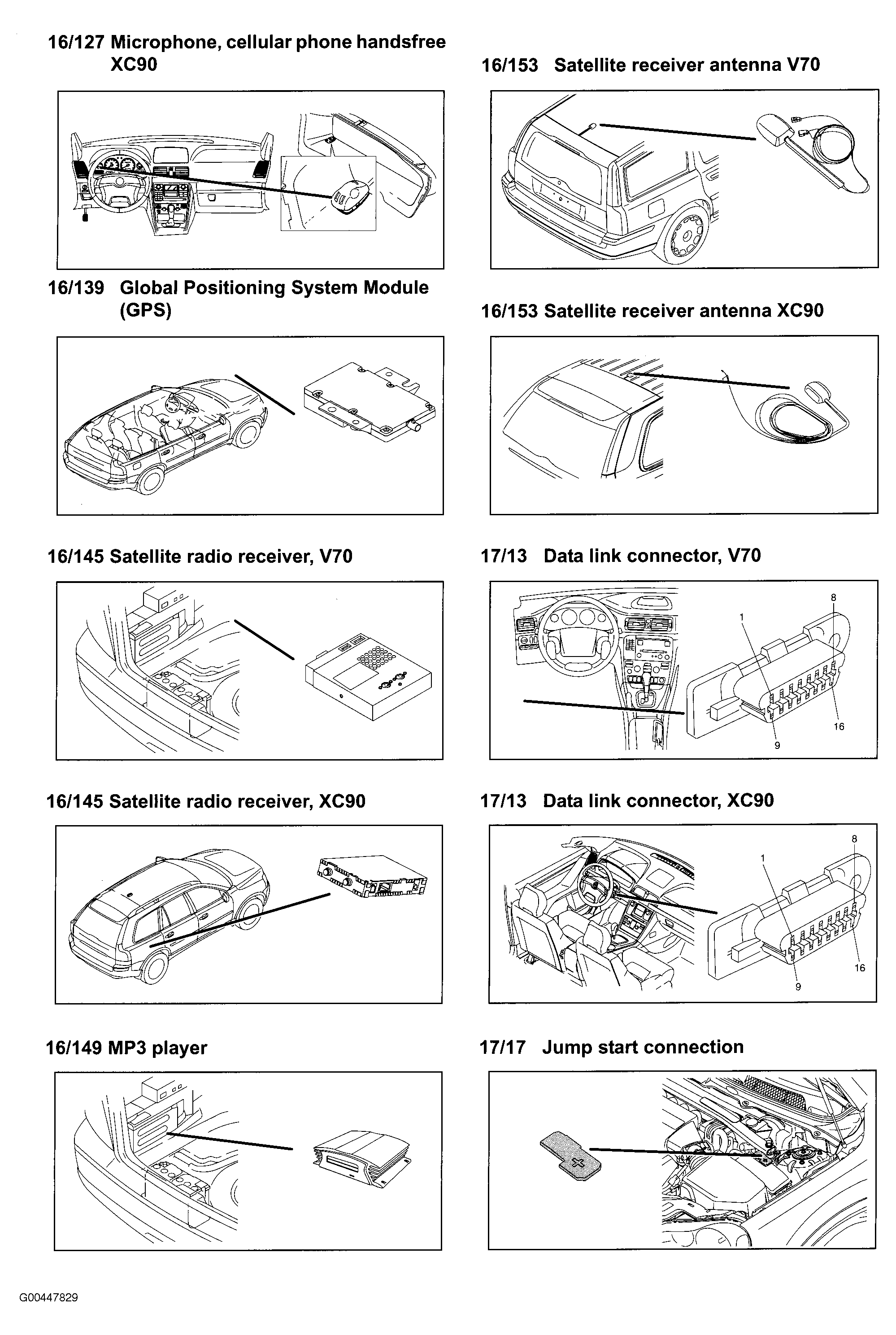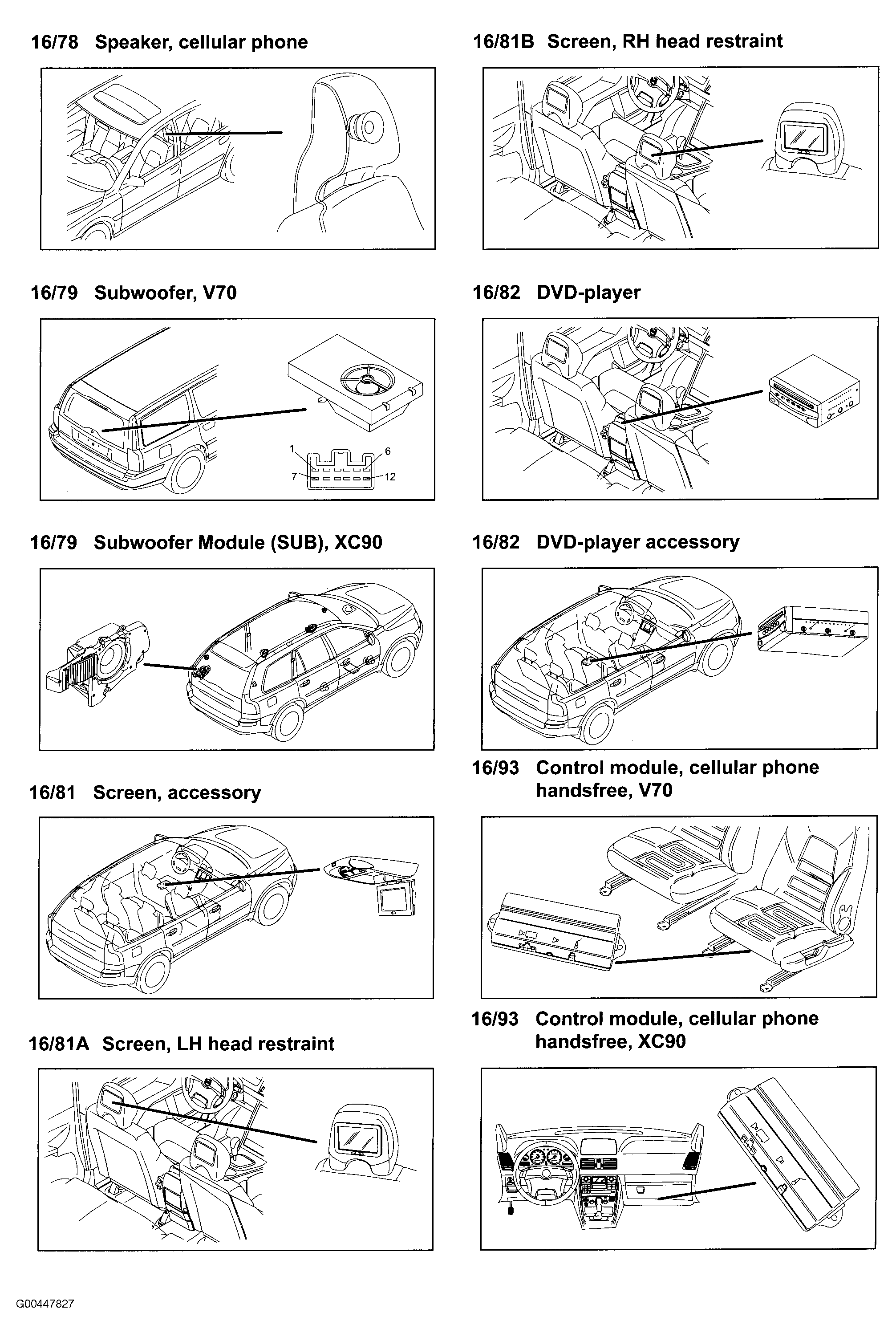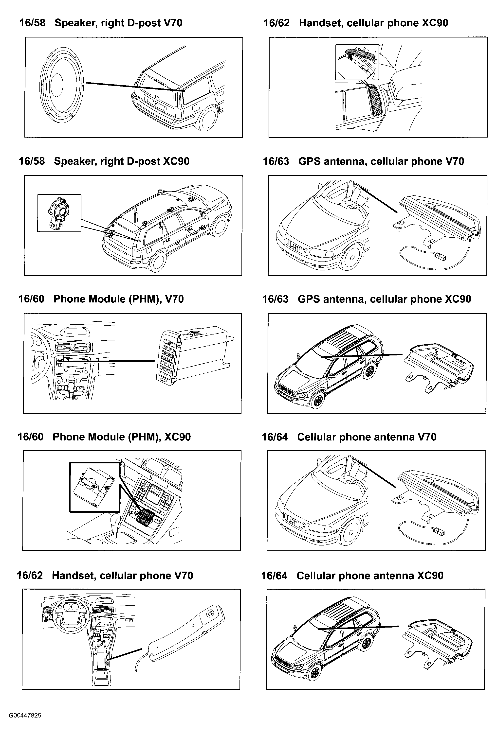 | Cellular Phone Hands Free Control Module (XC90) (16/93) | Behind right side of dash. See Figure. |