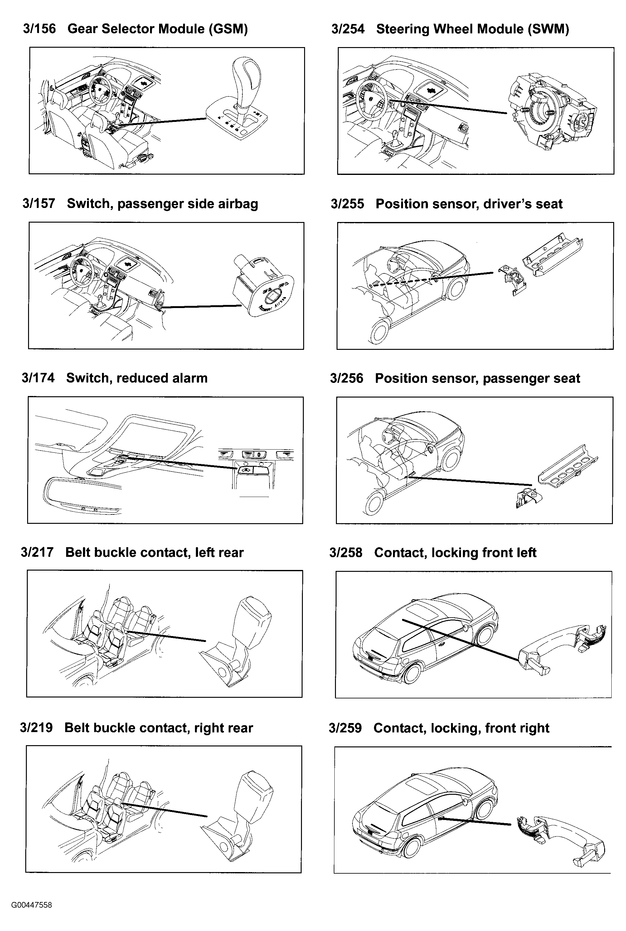 | Steering Wheel Module (SWM) (3/254) | Top of steering column. See Figure. |