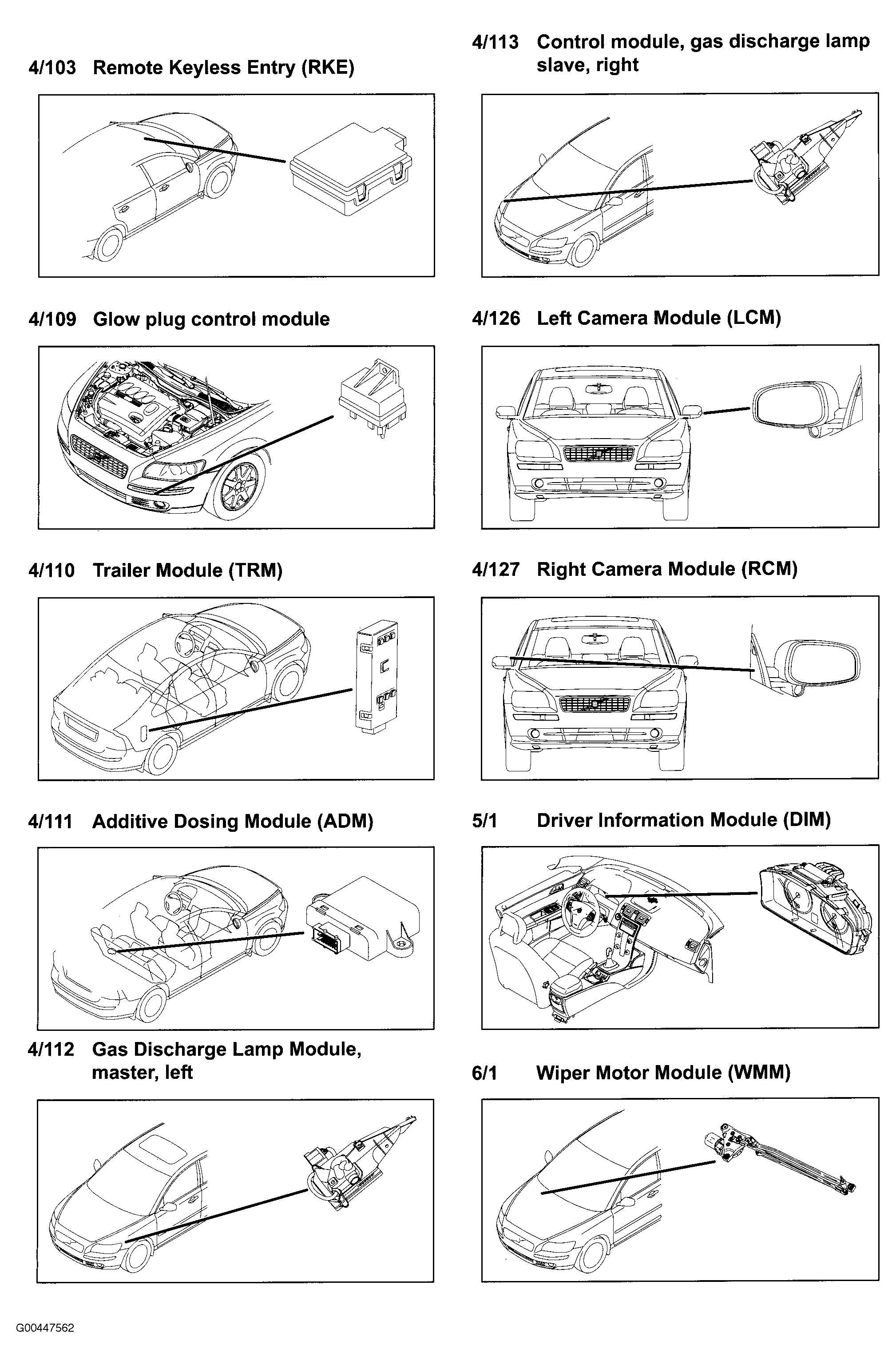 | Additive Dosing Module (ADM) (4/111) | Behind left rear seat. See Figure. |