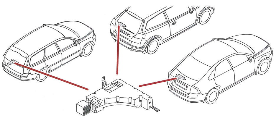 | Parking Assistance Module (PAM) (4/86) | Right rear corner of cargo compartment. See Figure. |