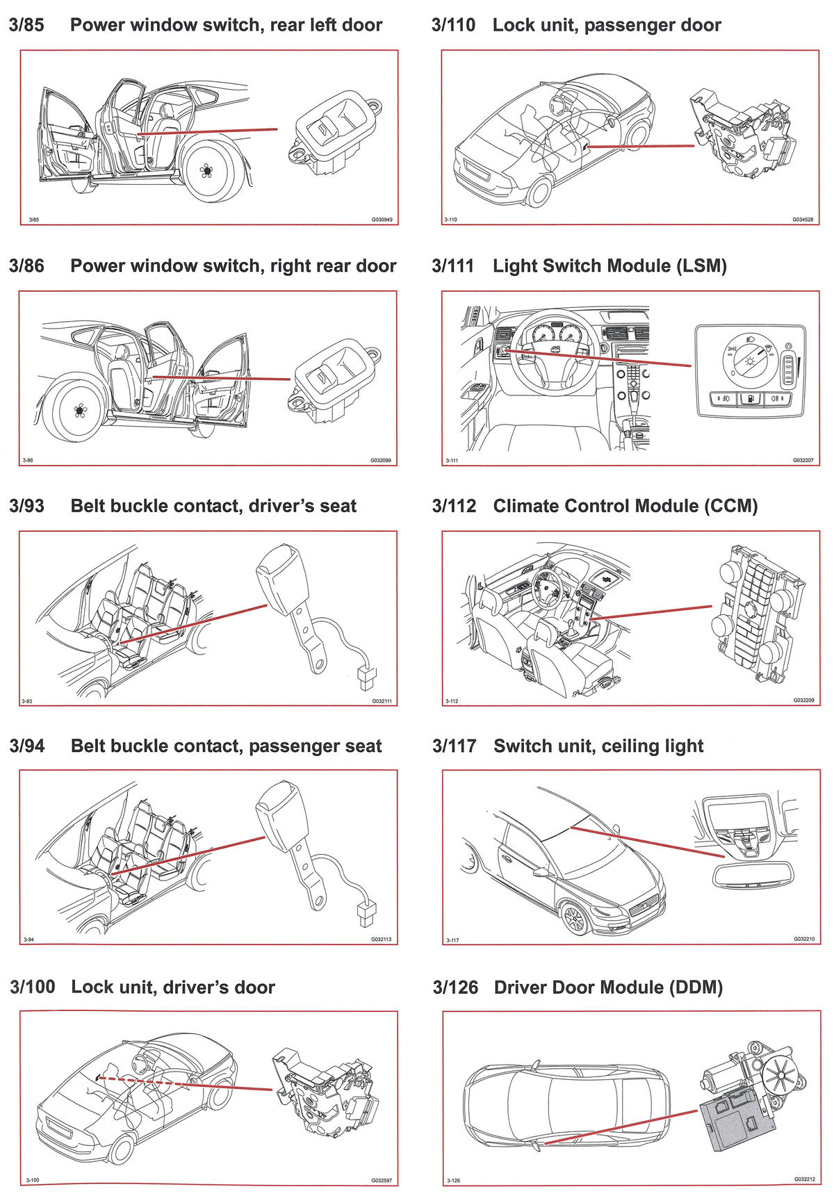 | Passenger's Door Module (PDM) (3/127) | In passenger's door. See Figure. |