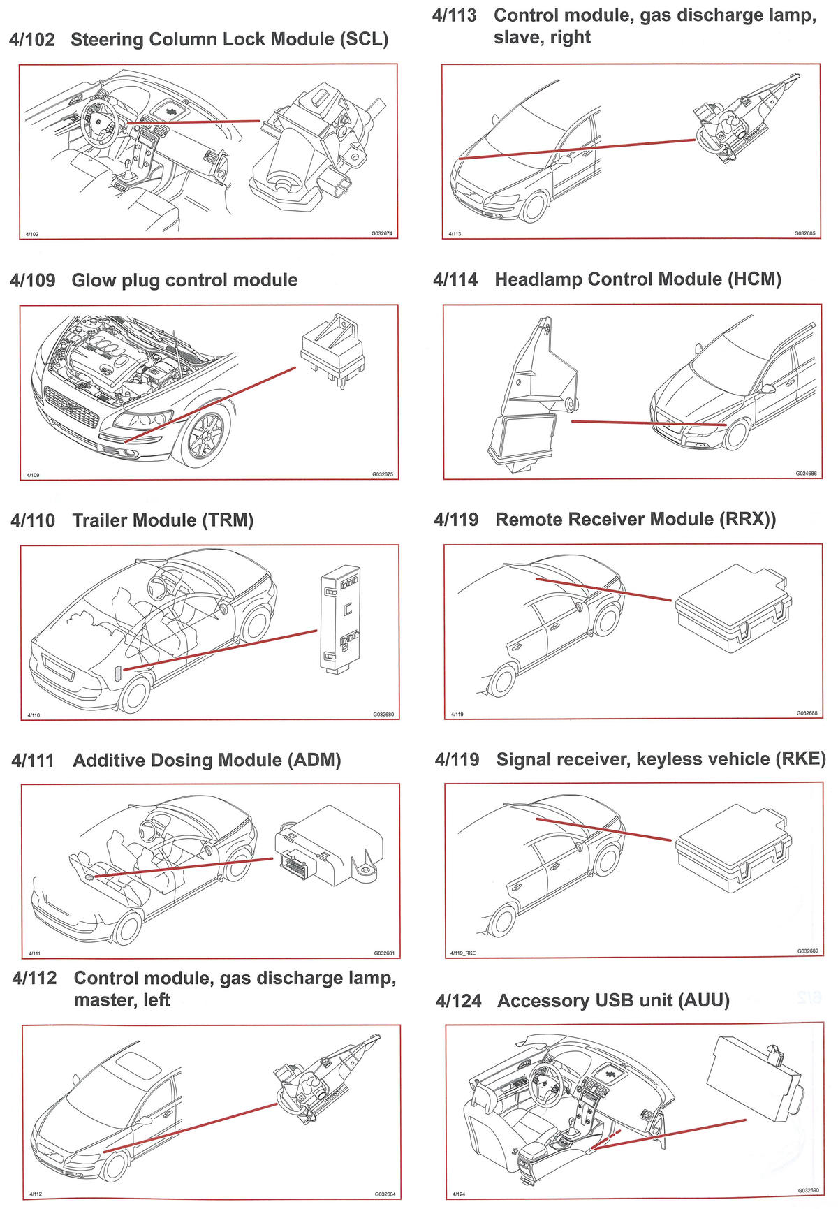 | Additive Dosing Module (ADM) (4/111) | Behind left rear seat. See Figure. |