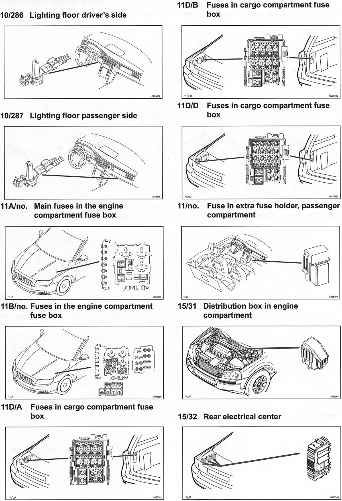 | Cargo Compartment Fuse Box (11 D/A, 11 D/B & 11 D/C) | Part of rear electrical center. See Figure. |