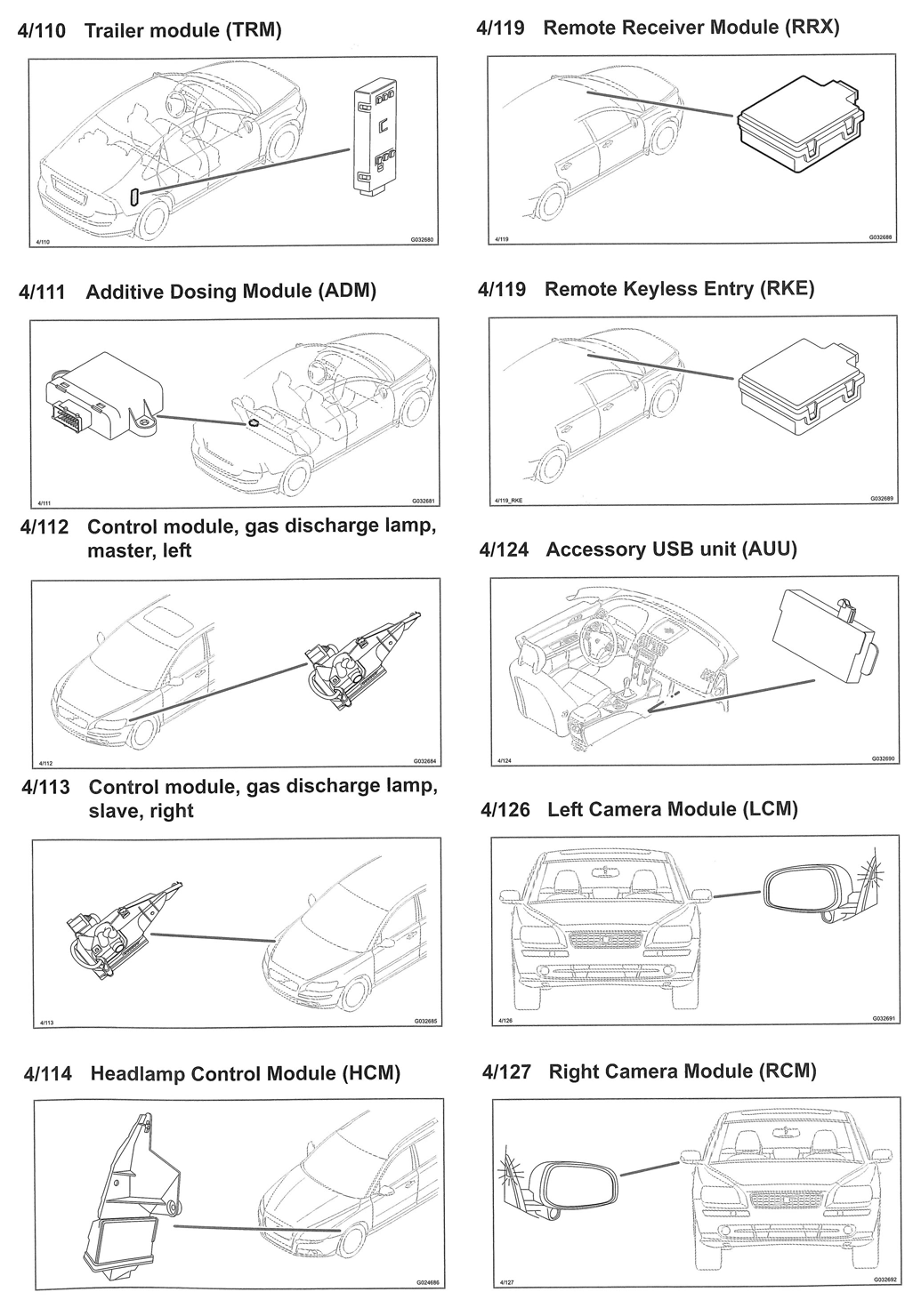 Trailer Module (TRM) (4/110) Right rear of trunk. See Figure.