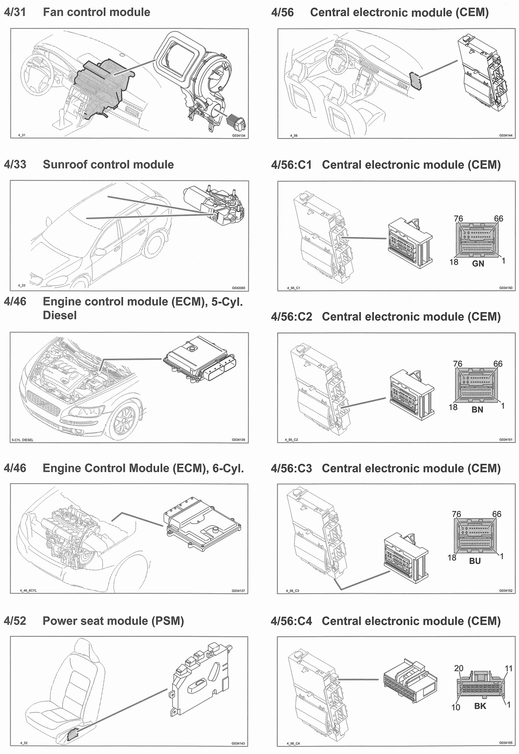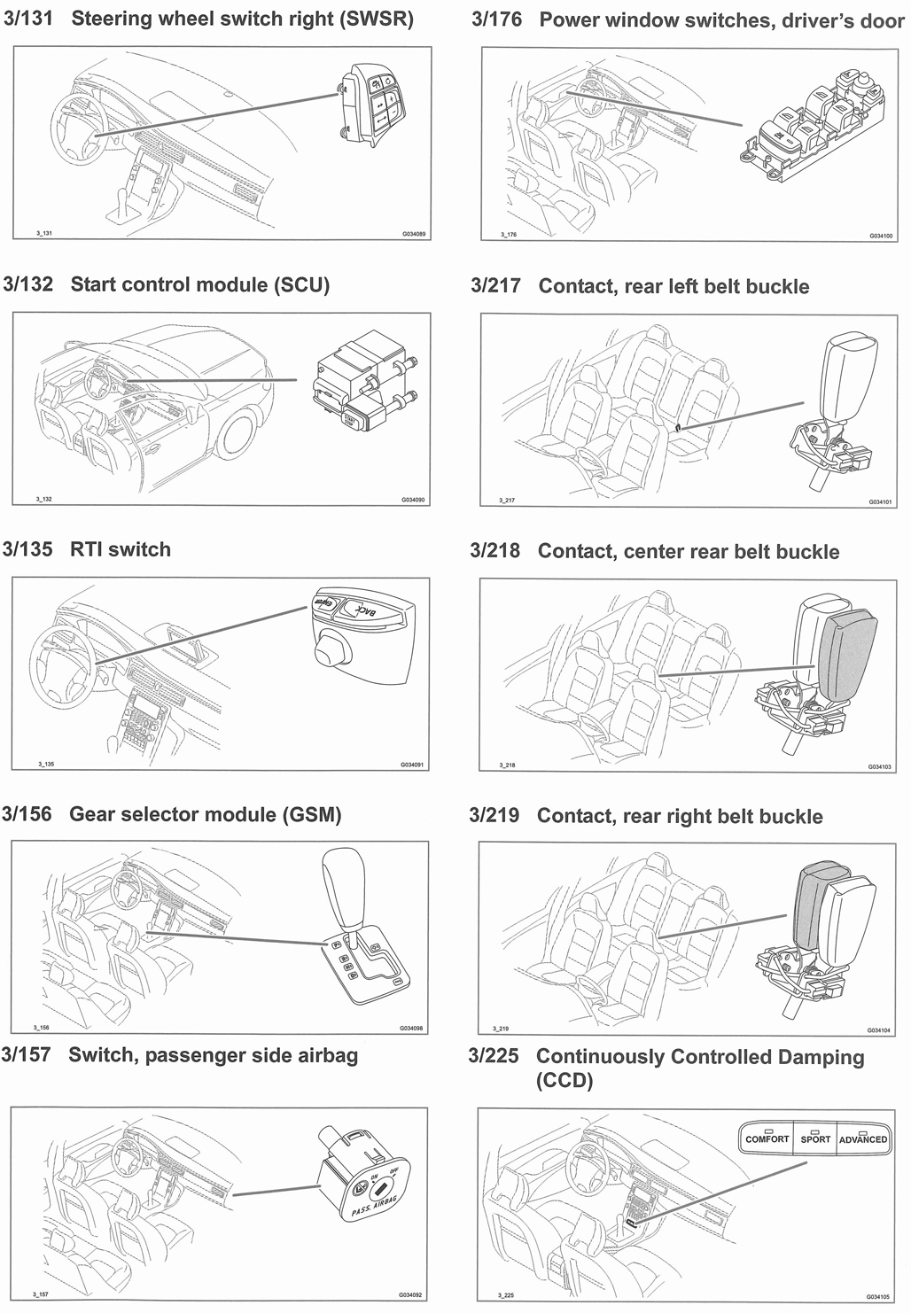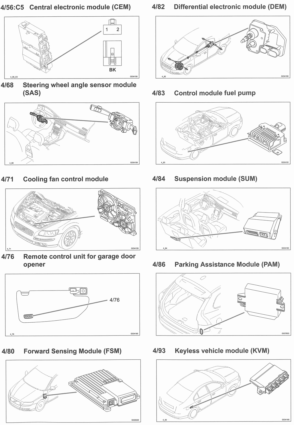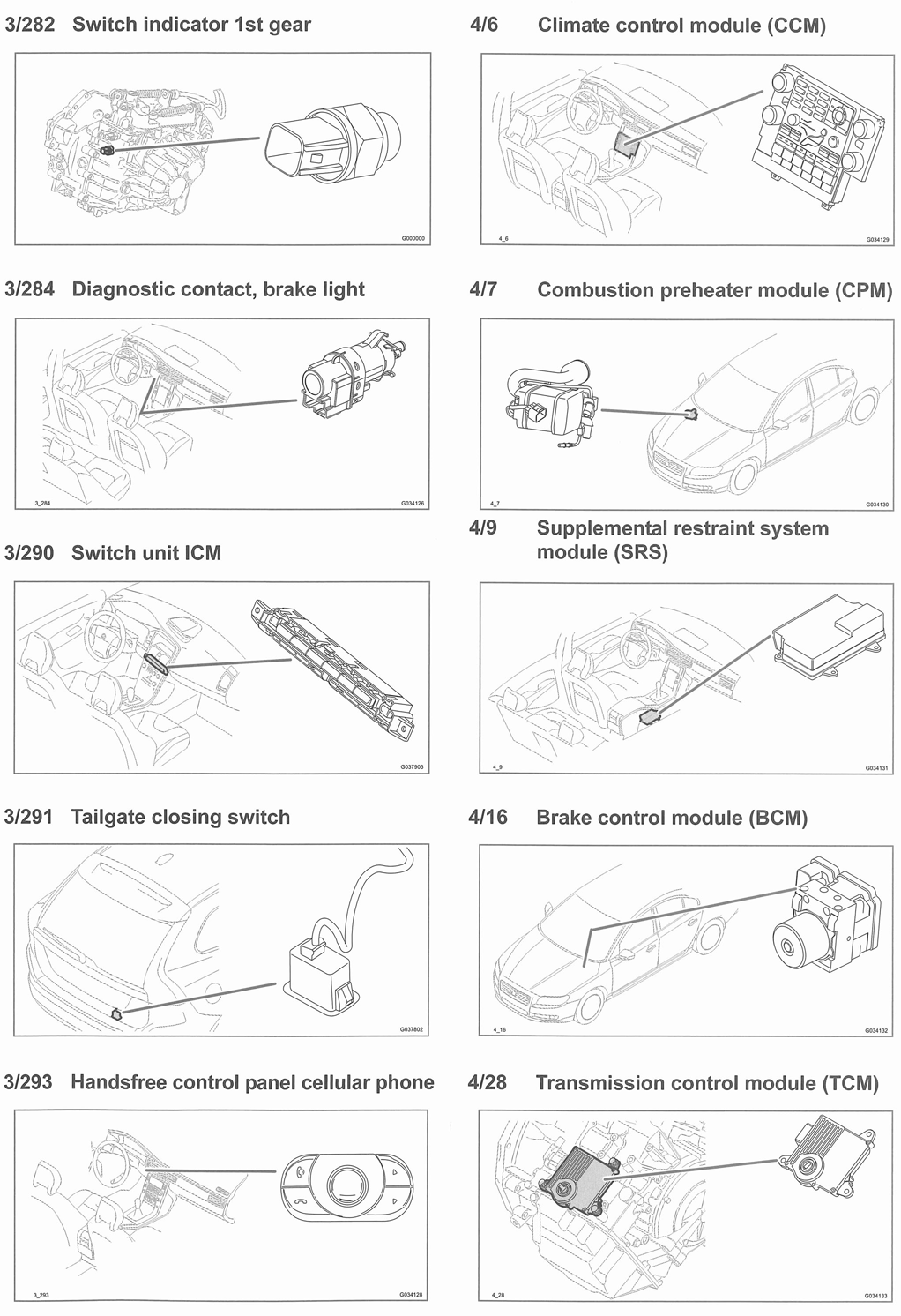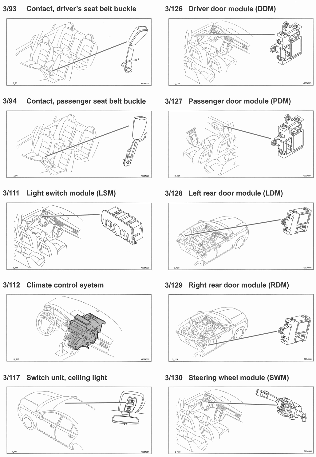 | Steering Wheel Module (SWM) (3/130) | In steering column. See Figure. |