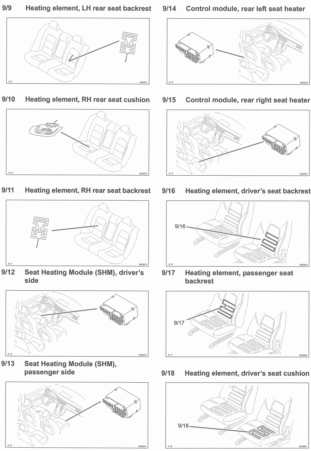 | Seat Heating Module (SHM) (Driver's/Passenger's Side) (9/12, 9/13) | In respective front seat bottom. See Figure. |