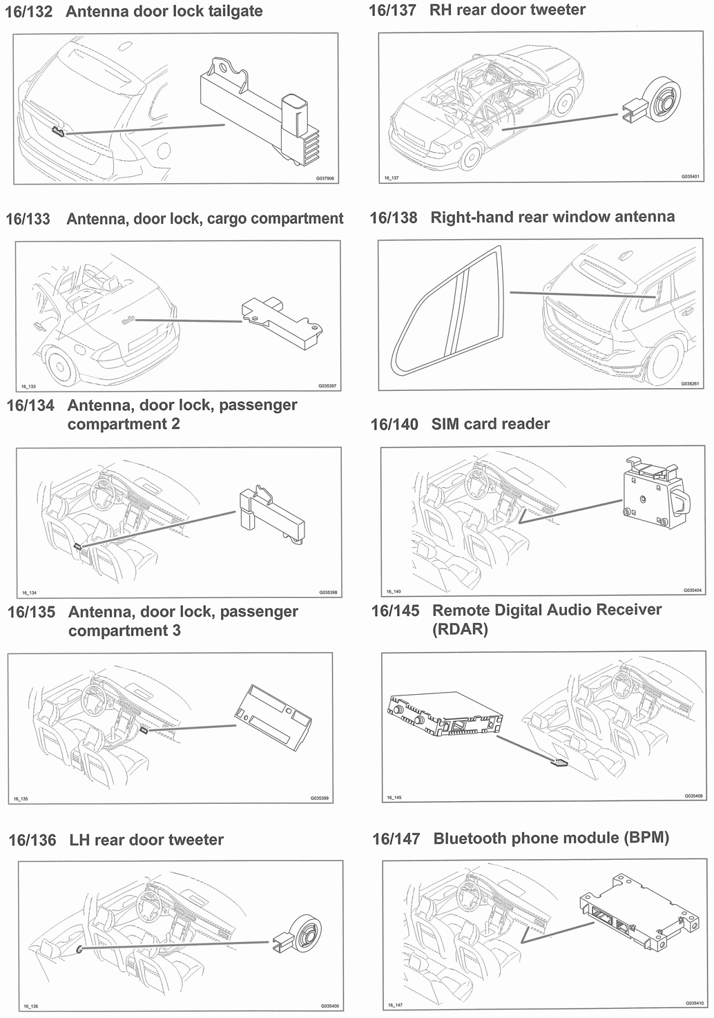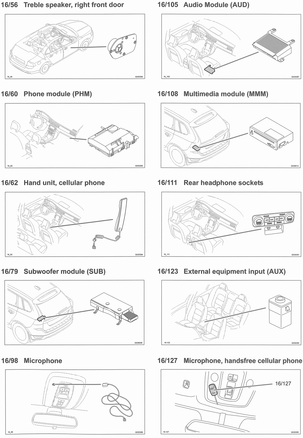 | Multimedia Module (MMM) (16/108) | Left rear of luggage compartment. See Figure. |