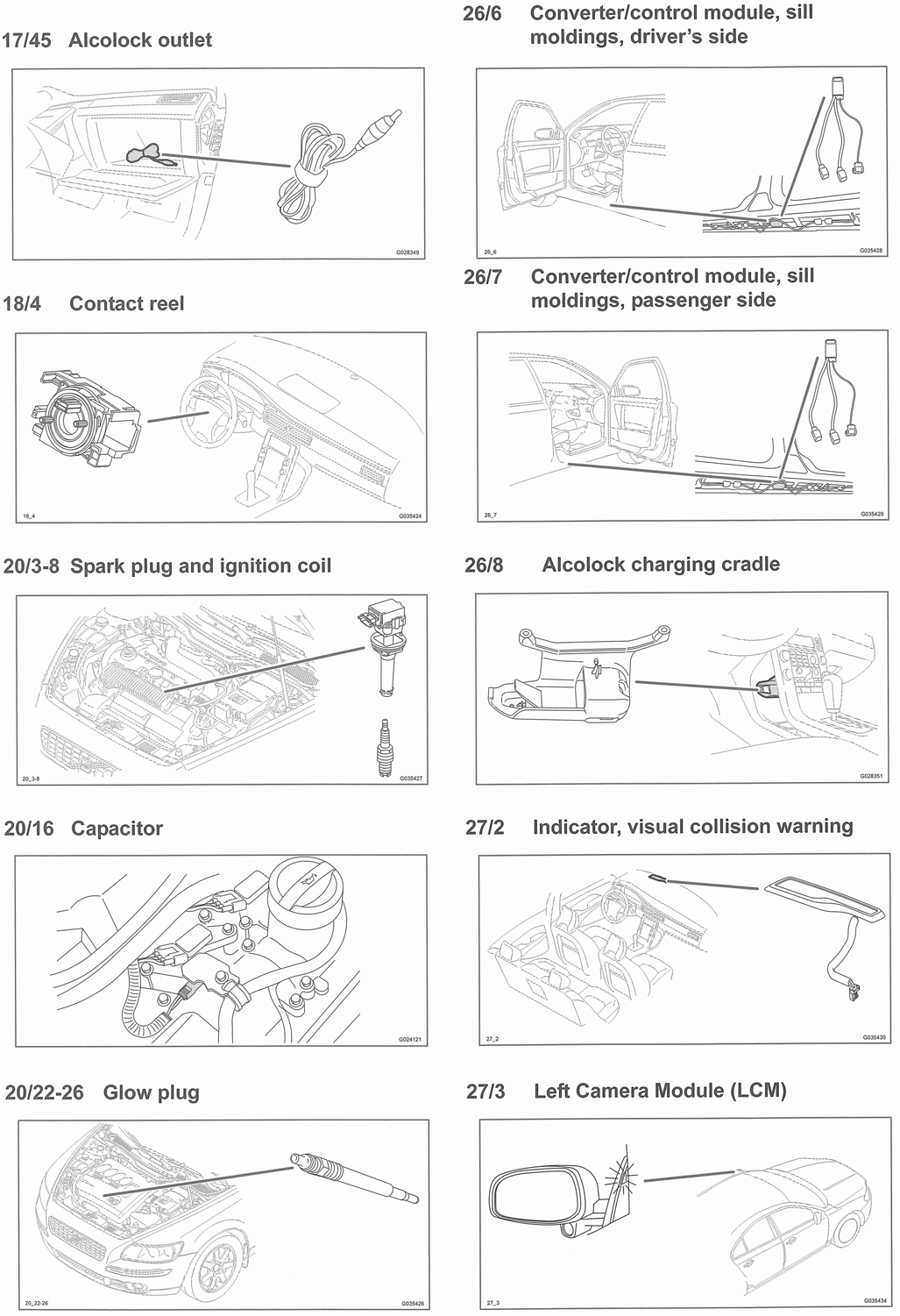 | Converter/Control Module (Driver/Passenger Door Sill) (26/6, 26/7) | Under respective front door sill. See Figure. |